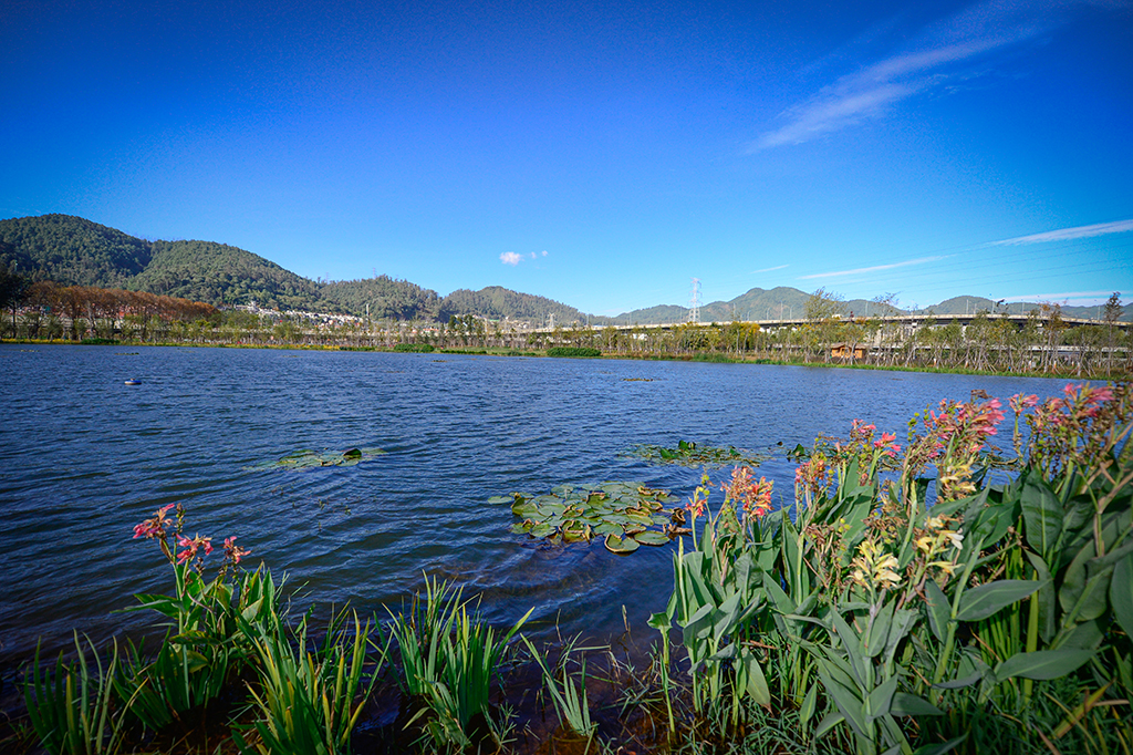 Swaying reeds and blooming wild flowers in Wangjiadui Wetland Park in Kunming, Southwest China's Yunnan province [Photo/IC]
