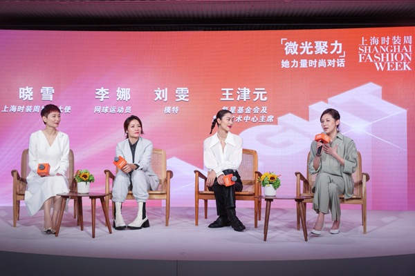 (From left) Former chief editor of Elle China Xiao Xue, tennis Grand Slam champion Li Na, supermodel Liu Wen and Wang Jinyuan, chairwoman of the Fosun Foundation Shanghai, attend the forum during the Shanghai Fashion Week.[Photo provided to China Daily]