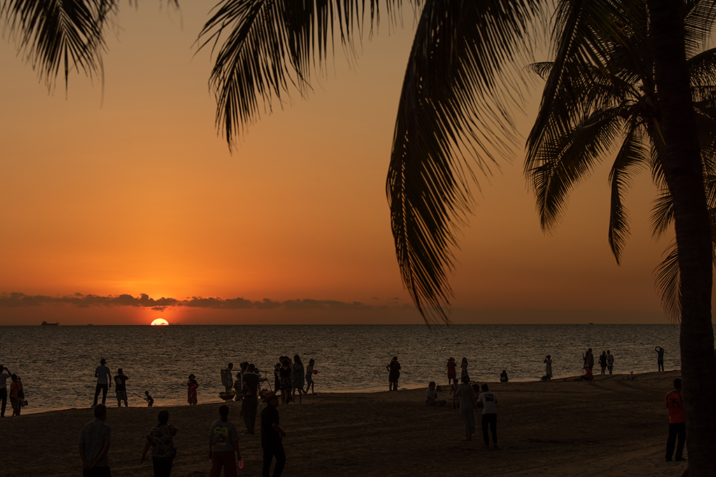Tourists admire the stunning sunset over Sanya Bay in Sanya, South China’s Hainan province. [Photo/IC]