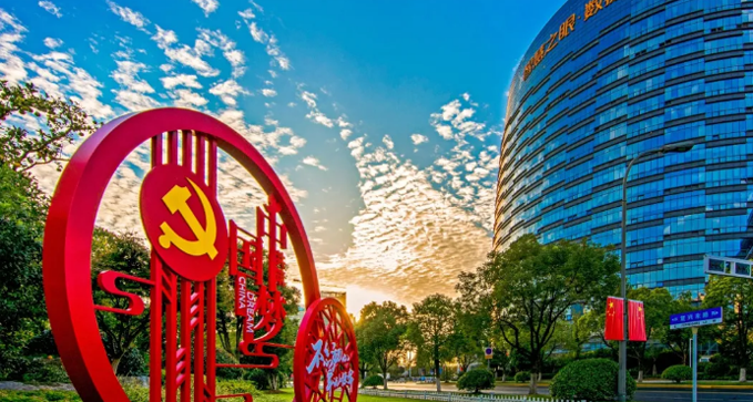 A Party-building billboard in the NETDA envisions the Chinese dream of realizing national rejuvenation and achieving development goals by reform and opening-up. [Photo provided to chinadaily.com.cn]