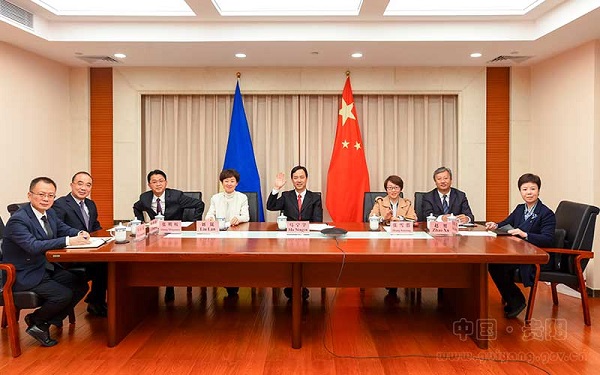 Guiyang and Sumy sign a letter of intent to establish friendly relations during a video conference. [Photo/guiyang.gov.cn]