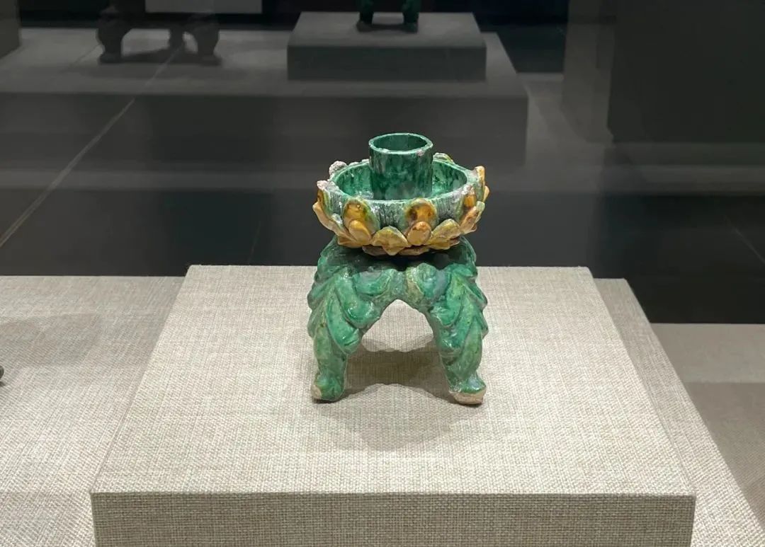 Yellow and green glazed ceramic candleholder with base from the Jin Dynasty (1115-1234), from the collection of the Datong Museum [Photo/Official WeChat account of Mianyang Museum]