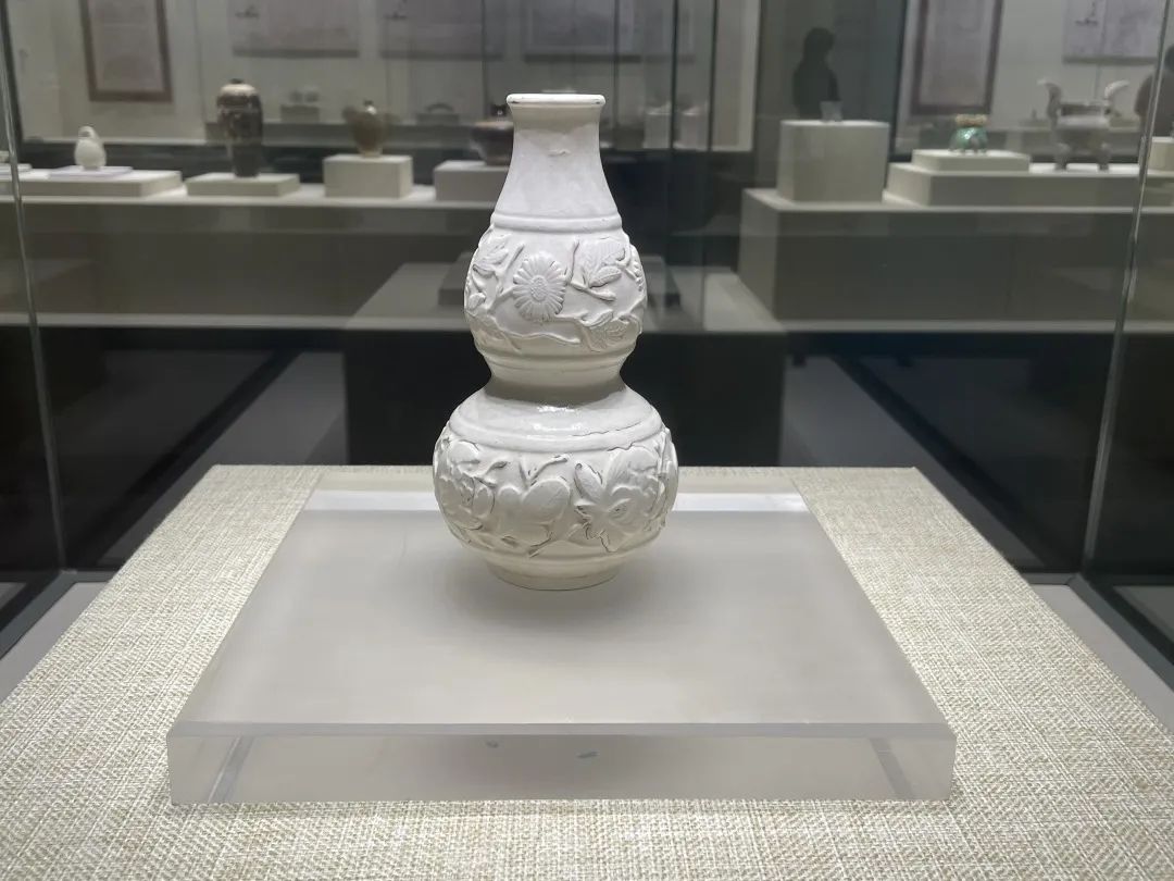 White glazed gourd-shaped vase with piled flowers motifs from the Liao Dyansty (916-1125), from the collection of the Datong Museum [Photo/Official WeChat account of Mianyang Museum]