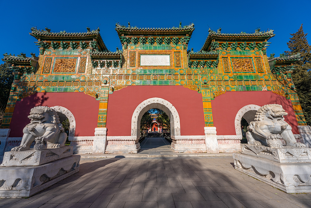 An archway that bears a plaque marked “Hua Zang Jie” (Buddhist Pure Land) leads to the Buddhist temple in Beihai Park in Beijing.[Photo/IC]