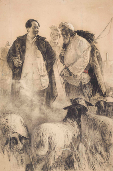 Highlights of the show include a charcoal drawing on paper titled Chairman Mao and Shepherd, which shows the late leader enjoying a chat with an old man on his way to herd sheep. Liu made it in 1957 while in Yangjialing, a village not far from Yan'an, the revolutionary base of the Communist Party of China in the 1930s and '40s.