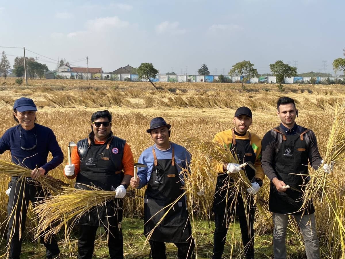 Expats got the opportunity to participate in interesting experience activities, such as harvesting rice with farmers and making silk handicrafts in the village.