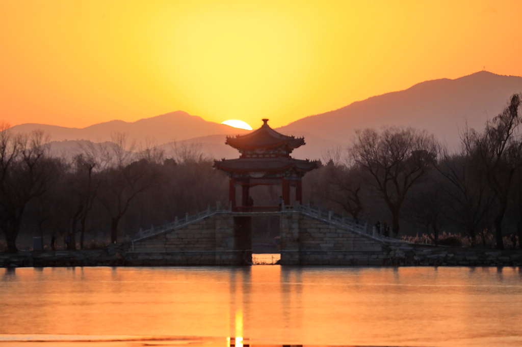 A sunset view of West Lake in the Summer Palace in Beijing [Photo/IC]