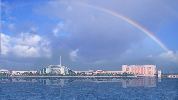 A rainbow arches over the Lin-gang Special Area of the China (Shanghai) Pilot Free Trade Zone in Shanghai. [Photo/lgxc.gov.cn]