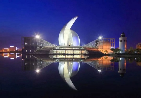 Nightview of the China Maritime Museum in the Lin-gang Special Area, Pudong New Area, Shanghai [Photo/WeChat account: shlgguanweihui]