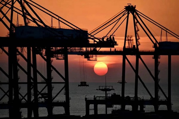 A superb blood-red sunset adorns the Lin-gang Special Area, adjacent to Shanghai seaport and Pudong airport. The area is backed by Shanghai Port, the world's busiest port. [Photo/Wenhui Daily]