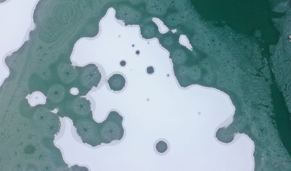 After a recent rare snowfall, the snow and ice forms a unique shape on a lake in the Taklimakan Desert in Northwest China’s Xinjiang Uygur autonomous region. [Photo/IC]