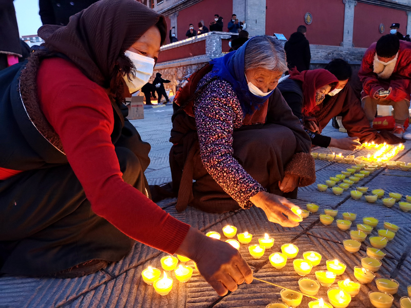Buddhist followers observe the Lamp Festival at the Kumbum Monastery in Qinghai province on Nov 29. [Photos/IC]