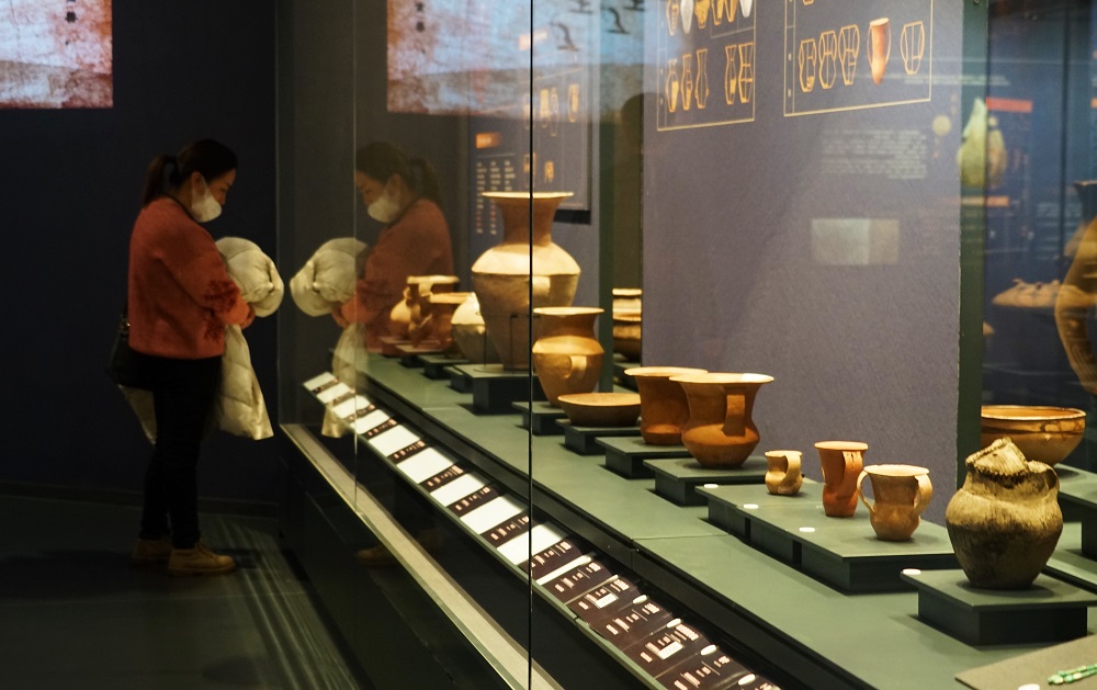 A visitor looks at the exhibits at the museum. [Photo/IC]