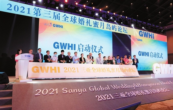 The 2021 Sanya Global Wedding and Honeymoon Island Forum (GWHI), an important part of the 25th Sanya Tianya Haijiao International Wedding Festival, was held at the Sanya Tianya Haijiao Tourist Area on Nov 29.