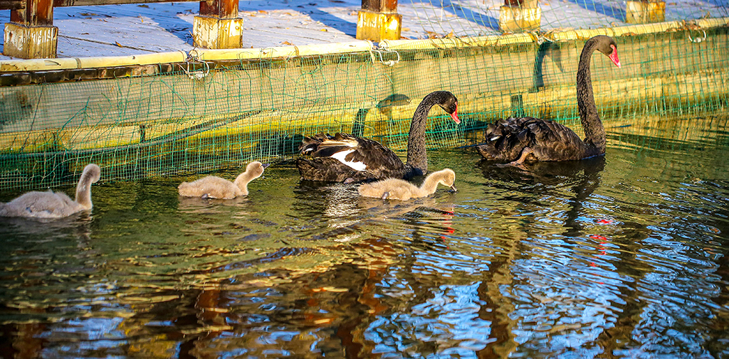 Someday these little birds will grow into elegant swans! Check out three little black swans swimming with their parents in a lake in Handan, North China’s Hebei province. Aren't they lovely?