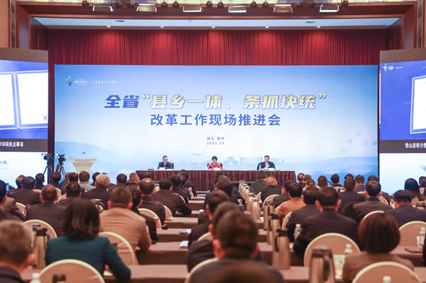 Quzhou's performance as a pathfinder for Zhejiang's township and county integration is lauded at a recent planning meeting in the city. [Photo/WeChat account: quzhoufb]
