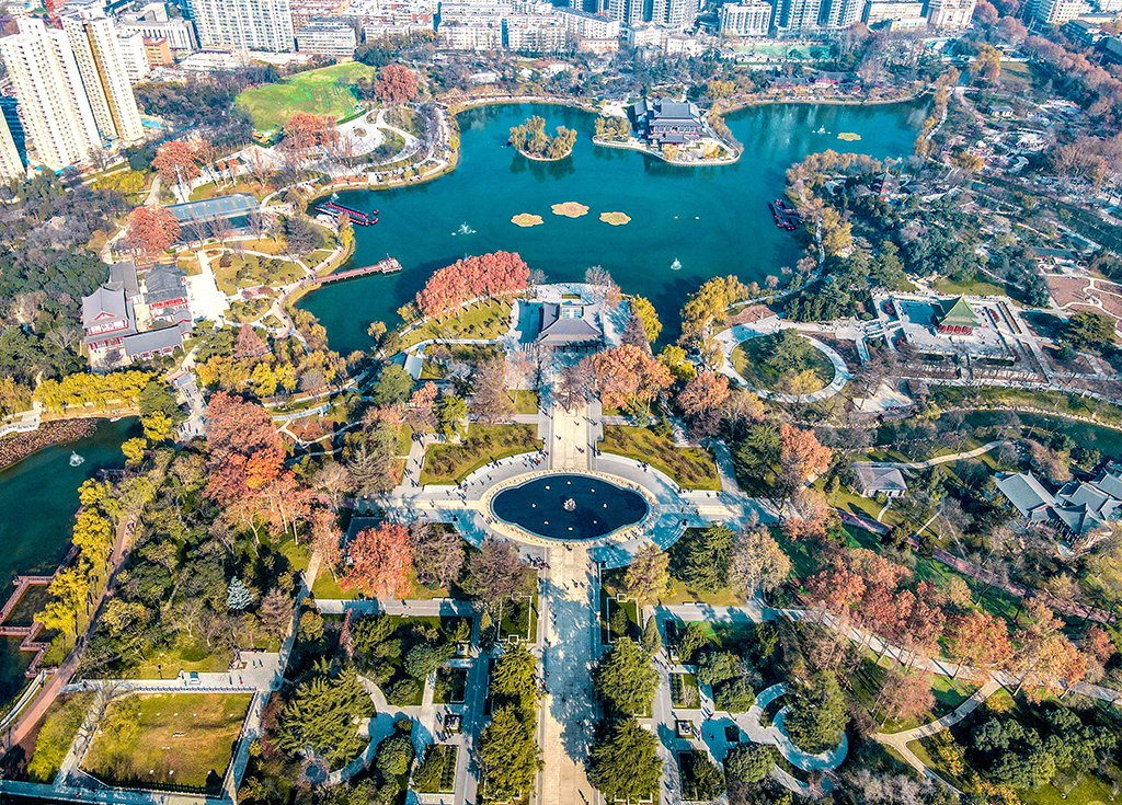 An aerial view of the Park of Xingqing Palace in Xi’an, Northwest China’s Shaanxi province [Photo/IC]