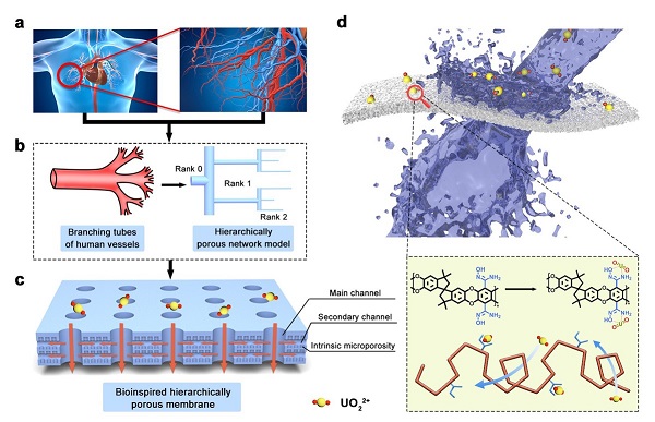 This biomimetic membrane allows for rapid diffusion and sufficient adsorption of uranyl ions through a hierarchical porous structure, compared with a common porous membrane. Tests showed that this new type of membrane can increase the adsorption capacity up to 20 times.