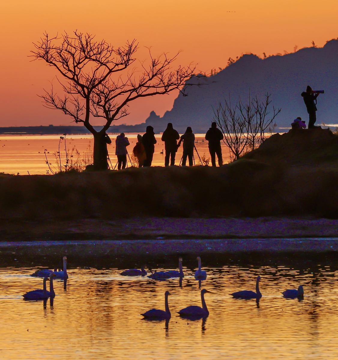 Whooper swans arrive to spend the winter in Rongcheng, Weihai, Shandong province for winter. So far, around 6,000 have come.[Photo by Li Xinjun/Provided to chinadaily.com.cn]