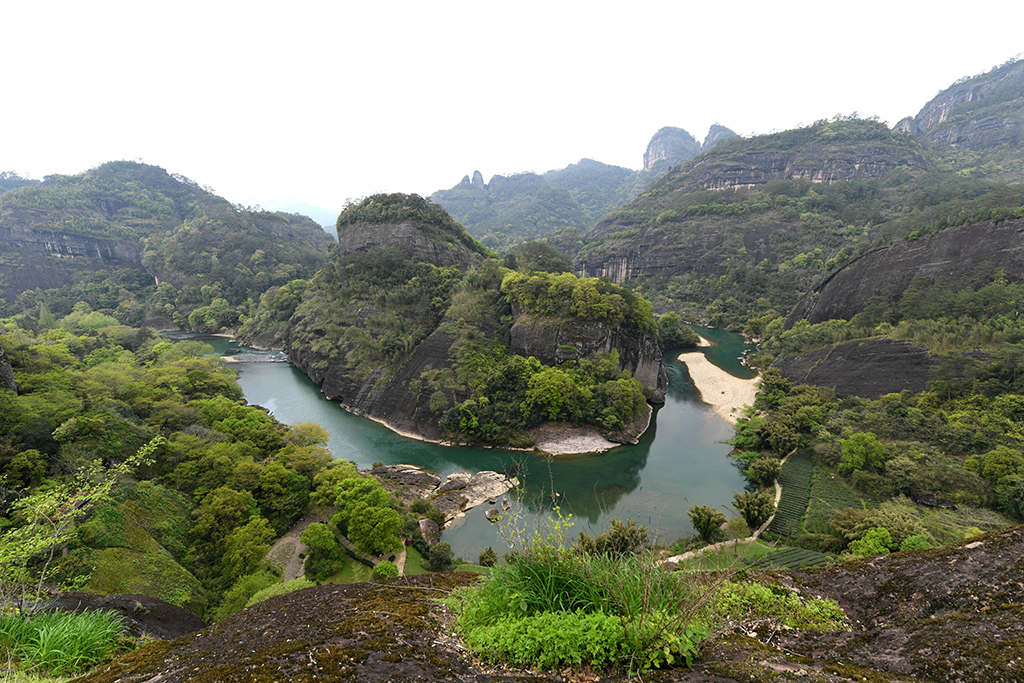 The various landforms of Mount Wuyi are the results of geological structure, runoff erosion, weathering denudation, and gravity collapse. Located in a subtropical area, Mount Wuyi boasts a mild and humid climate in all four seasons and a forest coverage rate of 87.86 percent.