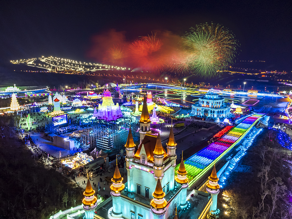 Good news! Changchun Ice and Snow New World just opened in Northeast China’s Jilin province. The world-class ice and snow theme park has ice buildings, snow sculptures and ice slides. At night, it holds spectacular firework and light shows, drawing many tourists.