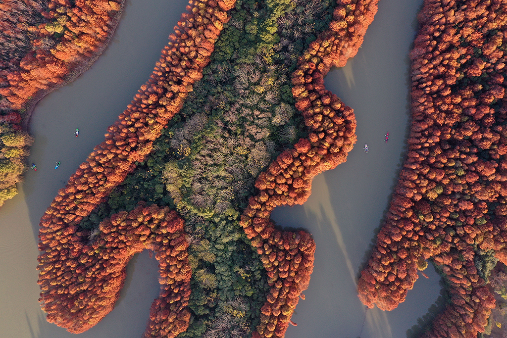 Dawn redwood forests resemble clusters of red sponge in Shanghai