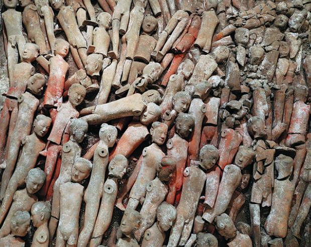 More than 110 burial pits were scattered around the tomb. According to Ma, though only eight burial pits have been excavated, over 1,000 pottery figurines that "guarded" the emperor were found. Thousands more artifacts made of pottery, iron and bronze were also unearthed.