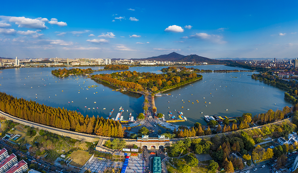 A river surrounded by trees with the changing colors of autumn leaves in Nanjing, capital of East China’s Jiangsu province [Photo/IC]