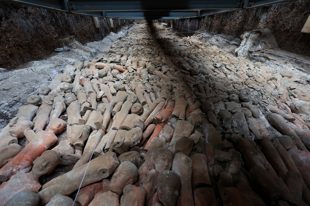 A large number of pottery figurines are discovered during the excavation. [Photo/IC]