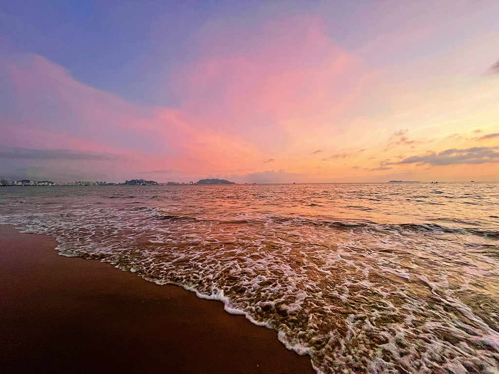 Feast your eyes on the recent sunset over Sanya Bay in Sanya, South China’s Hainan province! The sunset glow has turned the clouds purple in this postcard-perfect shot.