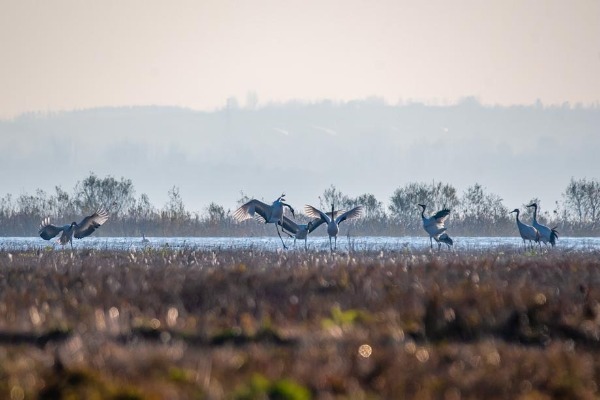 Photographers record rare cranes in Qingdao
