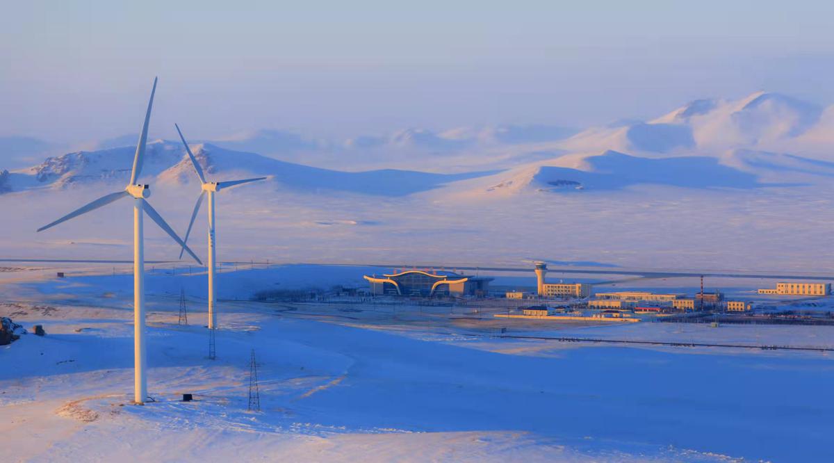 Huuliin Gol airport is nestled near snow-capped mountains. [Photo by Liu Keqiang for chinadaily.com.cn]