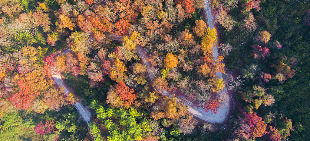 In Banlong village, Pingnan township, Yizhou district in Hechi, South China's Guangxi Zhuang autonomous region, the maple forests that cover the mountains and plains are very layered with different colors. They radiate yellow, green, and red tones and are jagged. Take a walk through the maples and let off some steam!