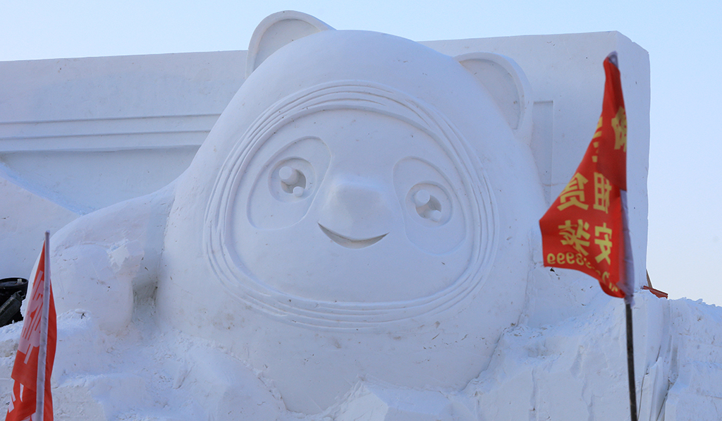 The snow sculpture of the mascot of Beijing 2022 Olympic Winter Games "Bing Dwen Dwen" in the Stalin Park in Harbin, Northeast China’s Heilongjiang province [Photo/IC]