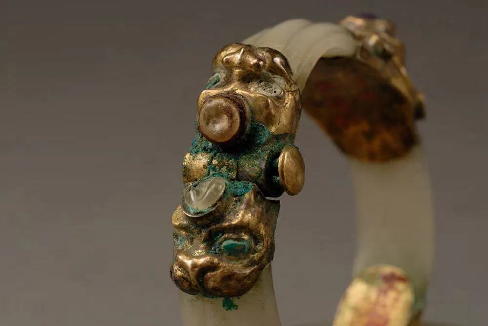 Jade-embedded bracelet is on exhibit at the Henan Museum. [Photo/Official WeChat account of Henan Museum]