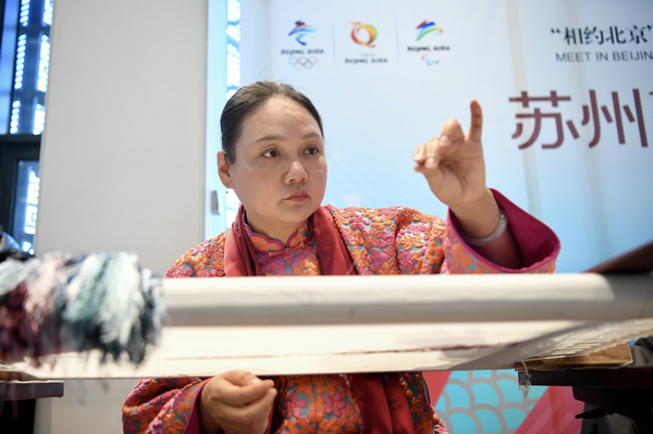 An artist demonstrates Su-style embroidery. [Photo provided to China Daily]