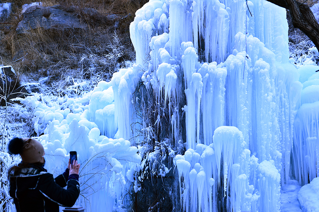 Ice waterfall forms in western Beijing
