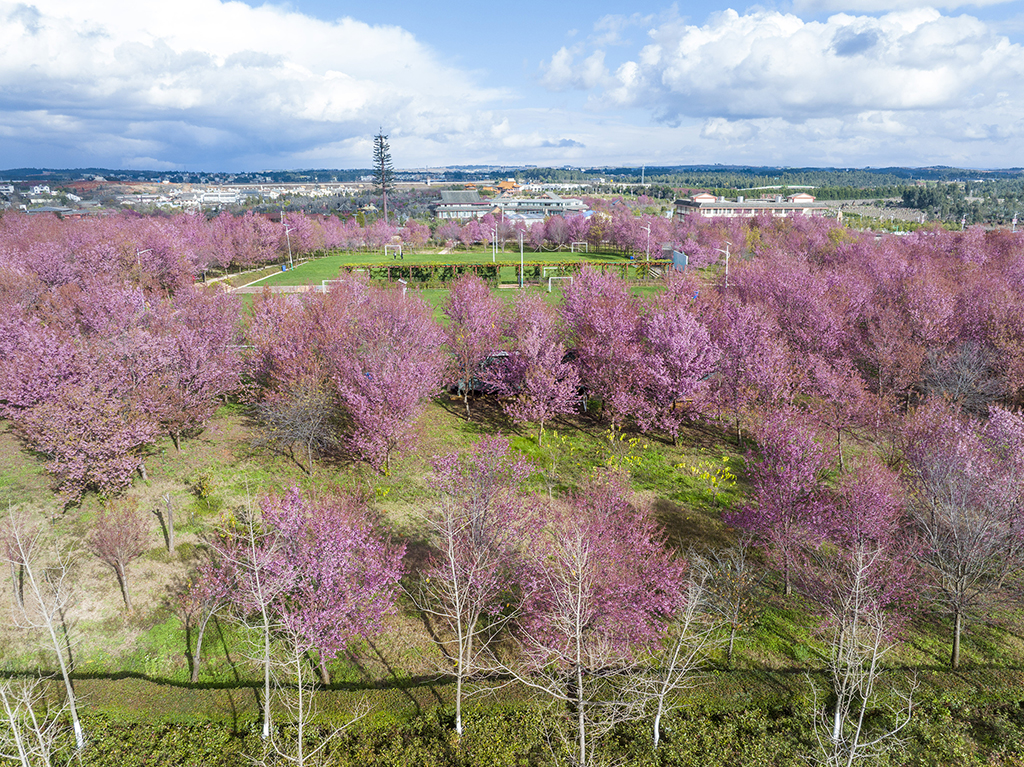 Pink cherry blossoms at world heritage site in SW China