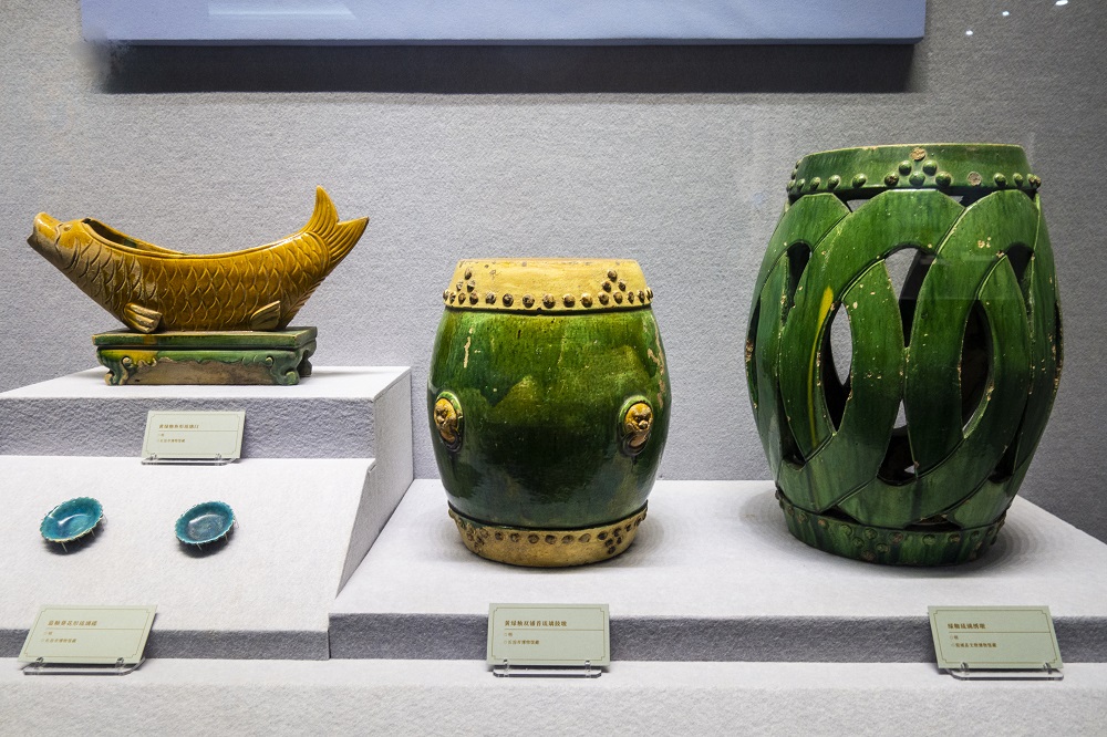 Glazed potteries for daily use are on exhibit. [Photo/IC]