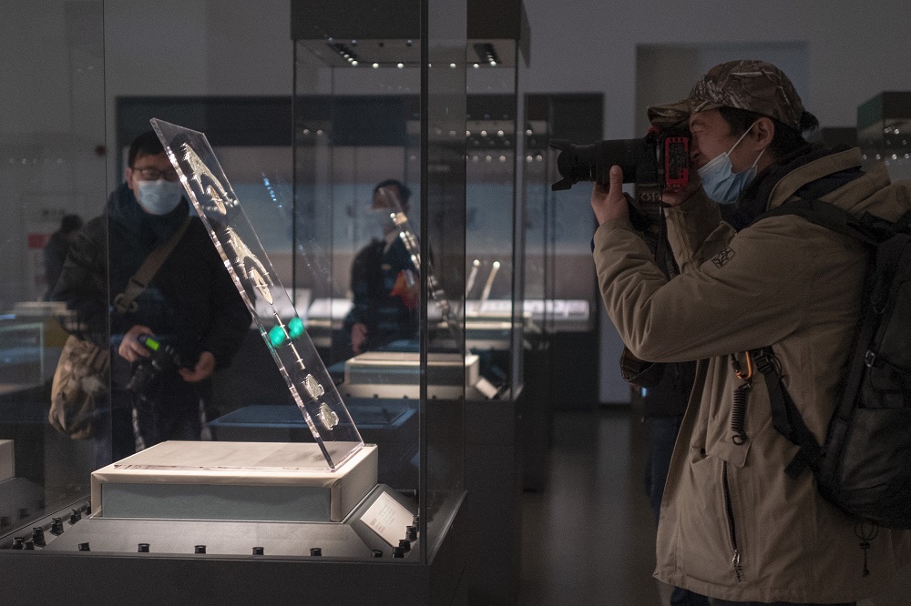 A visitor takes a photo of an item on exhibit. [Photo/IC]
