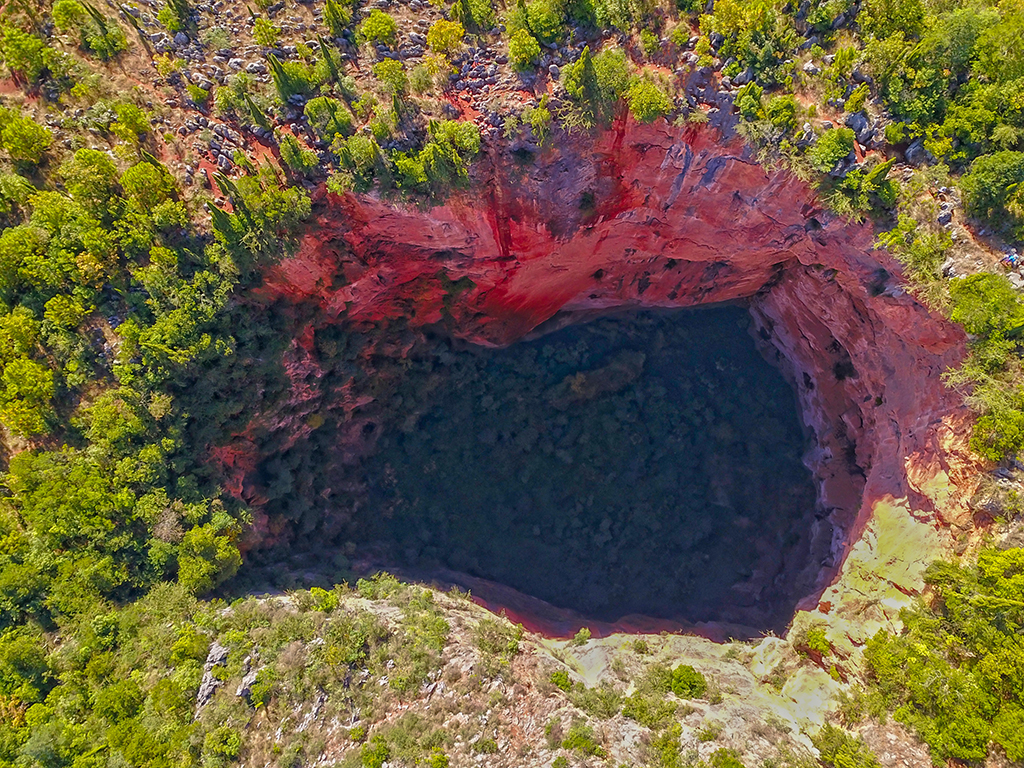 Aerial views of the Zhanyi Sinkhole in Qujing, Southwest China’s Yunnan province [Photos/IC]