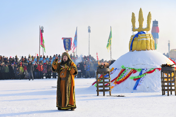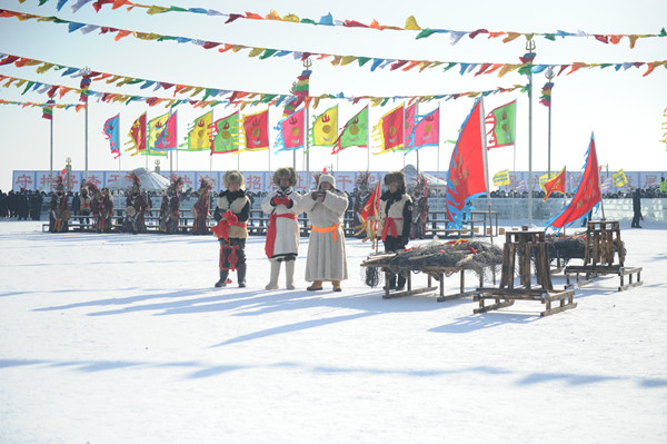 The opening ceremony of the 20th Chagan Lake Ice-Snow Fishing and Hunting Cultural Tourism Festival is held in Songyuan, Northeast China's Jilin province, on Dec 28. Chagan Lake is among the top 10 freshwater lakes in China, as well as a national 4A-level scenic spot. Since 2002, at the end of December every year, Chagan Lake has hosted a grand ice and snow fishing and hunting cultural tourism festival. [Photo provided to gojilin.gov.cn]