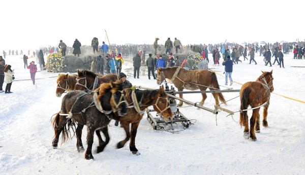 Chagan Lake fishermen are China's last remaining fishing tribe. They drill holes in the ice, throw in their fishing nets and use horses to pull winches as they trawl for a catch. In doing so, they are preserving a tradition that dates back more than 1,000 years. [Photo provided to gojilin.gov.cn]