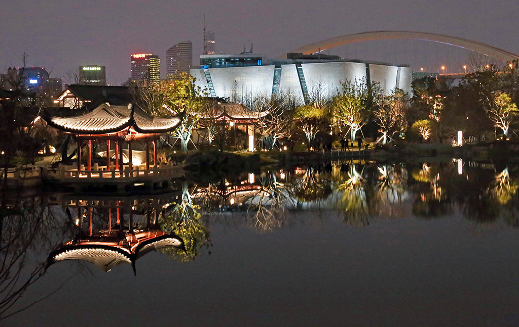 The Shenyuan Garden is lit up at night in the Shanghai Expo Culture Park. [Photo/IC]