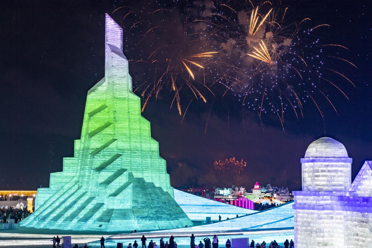 Covering an area of 820,000 square meters, the park used some 230,000 cubic meters of ice and snow to create 65 different landscapes this year, with the popular "super ice slide" attraction extended to 423 meters.
