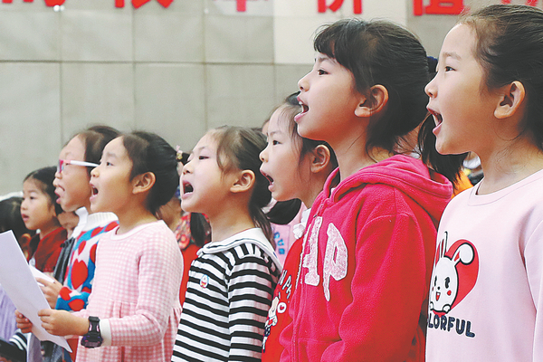 Singers from the China National Traditional Orchestra and its affiliated youngsters chorus at a rehearsal in Beijing on Monday. The rehearsal took place in preparation for the 22nd Meet in Beijing International Arts and Meet in Beijing Olympic Culture festivals, which will open on Thursday at Tianqiao Performing Arts Center. WANG ZHUANGFEI/CHINA DAILY