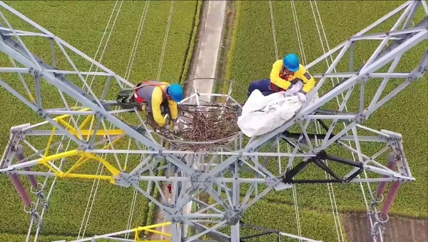 Oriental storks, a bird species under first-class state protection in China, seem to have a particular fondness for building their homes on electricity pylons. Each year, about 15 pairs of oriental storks do so in Gaoyou, a water-rich county in northern Yangzhou. To make the iron towers safer and more habitable for these birds, State Grid technicians have installed man-made nests on the pylons for them.