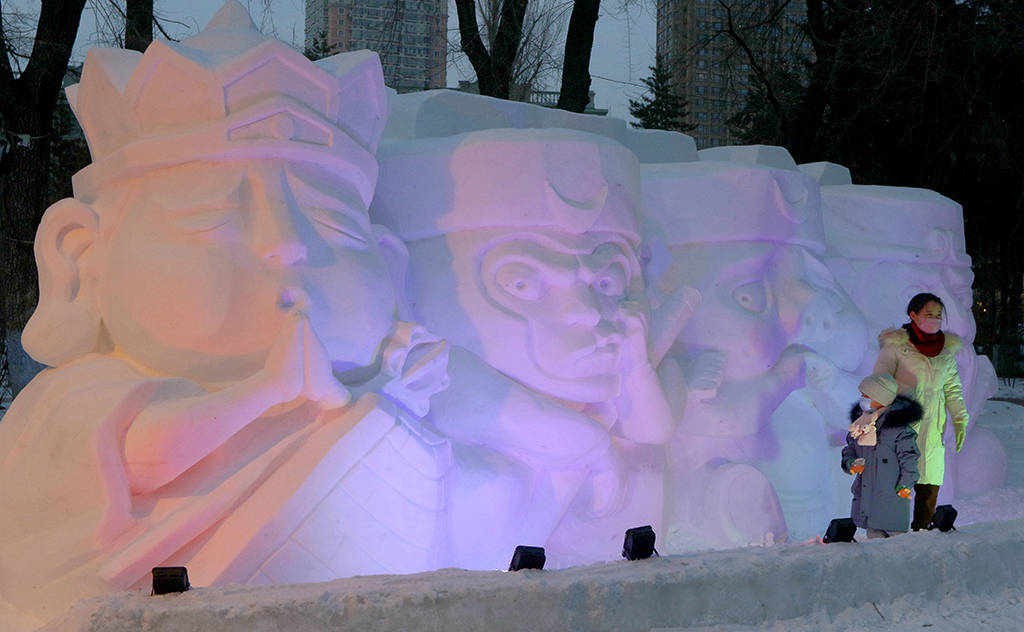 Snow sculptures are on display at the 48th Harbin ice lantern fair in Northeast China’s Heilongjiang province. [Photo/IC]