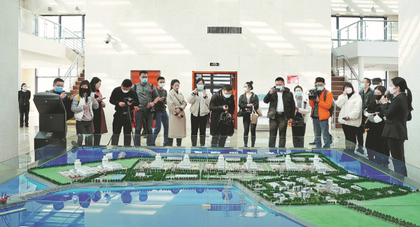 Visitors check a scale model of the nuclear power plant in Haiyang, Shandong province. [Photo by NIE DONGLEI/FOR CHINA DAILY]