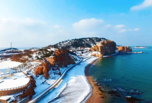 The Baxianguohai Scenic Spot in Penglai gets topped with fresh powder on Dec 17. The spot is famous for the legendary story Eight Immortals Crossing the Sea, which has been listed as a national intangible cultural heritage. [Photo/WeChat account: yantaifabu]
